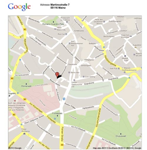 AnfahrtUnterrichtsort für PilatesMainz-Oberstadt: LES Pilates Studio –Martinsstr. 7, 55116 Mainz-OberstadtUnterrichtsort für BallettKlein-Winternheim:TV Halle (gegenüber der Haybachhalle) –Bandweidenweg 14A, 55270 Klein-Winternheim